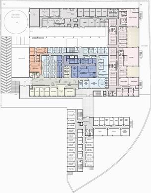 Sur un délaissé de terrain en contre bas de l?autoroute A7 à l?entrée Nord de Marseille, ce projet regroupe deux entités ? une entité d?hébergement sécurisé (CRA-ZA) et une entité tertiaire (DZPAF). Les objectifs prioritaires du maître d?ouvrage sont clairement affichés : des délais courts une fonctionnalité d?ordre sécuritaire et des coûts de construction en adéquation avec la pérennité souhaitée. La distribution fonctionnelle est claire et lisible, elle donne au projet une part importante de sa rigueur. Le projet s?étire en lignes horizontales qui redonnent une certaine continuité au paysage ; celle-ci est renforcée par le traitement coloré à dominante ocre rouille choisi pour dialoguer avec les toitures environnantes.