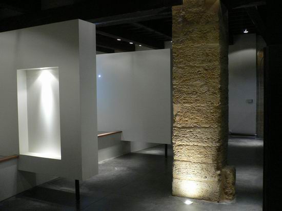 Au rez-de-chaussée, un parcours muséographique est mis en place autour d’un bloc central accueillant un sanitaire P.M.R et une réserve/dépôt. A l’étage, un espace polyvalent permet d’organiser des conférences et des projections. Un espace scénique est aménagé au fond. Ce parcours est équipé de cimaises murales, d’éclairages spécifiques et modulables, et de points informatiques en attente, pour permettre l’installation ultérieure de bornes interactives.