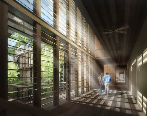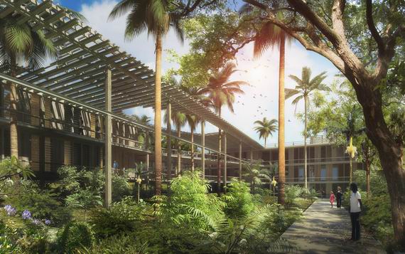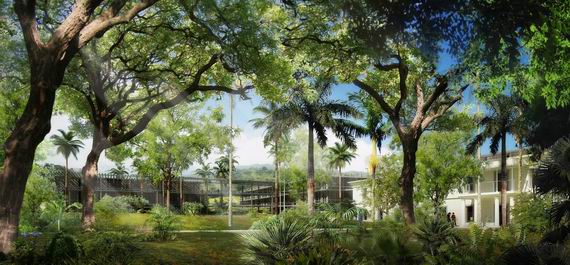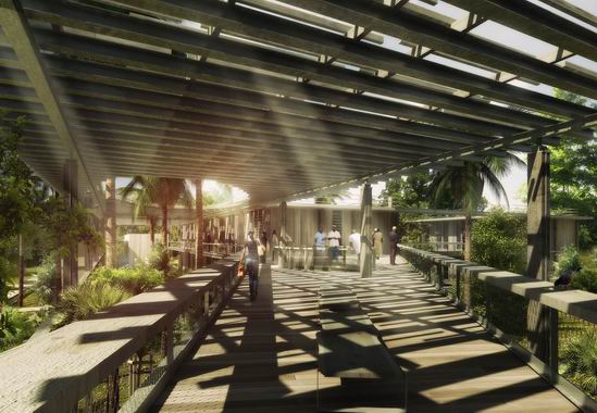 Il s’agit bien dans ce projet de construire à l’ombre de ces arbres et d’utiliser le confort qu’ils procurent dans les futures constructions. Cet état naturel permettra d’économiser la mise en œuvre d’éléments techniques couteux comme les sur-toitures ou des brise-soleils sophistiqués. La quasi-totalité des arbres existants et particulièrement les arbres rares ou remarquables seront conservés. Les constructions s’implanteront principalement sur les zones à démolir ou se faufileront entre les troncs.Les vestiges historiques encore présents dans le Parc, comme les anciens murs de clôture ou bien le tracé des canaux d’irrigation, seront réutilisés pour servir de ligne directrice à la composition du plan de masse. L’implantation des nouvelles constructions utilisera cette composante du paysage comme une volumétrie à part entière, un élément d’architecture.L’ensemble de ces bâtiments seront reliés entre eux part des passerelles extérieures qui garantiront dans le futur une nécessaire continuité spatiale si les programmes devaient évoluer et en attendant des espaces extérieurs un peu à la manière des maisons dans les arbres, en jouant avec eux.