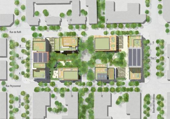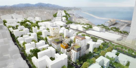 Notre projet a pour vocation d’accompagner l’Etablissement Public d’Aménagement Euroméditerranée dans la mutation sociale, culturelle, architecturale et urbaine de Marseille tout en mettant en valeur les spécificités climatiques, géographiques, culturelles et d’usages méditerranéens. La mixité est omniprésente sur notre projet, elle est sociale, fonctionnelle, spatiale, générationnelle et architecturale. L’identité est multiple, elle allie la modernité et la tradition, elle est méditerranéenne et ouverte vers le monde. Notre objectif est de (re)nouer les liens entre les générations et les populations autour du coeur d’ilot, véritable lieu de vie et de partage pour tous. Le programme se répartit comme suit: - 39 % de logements libres - 35 % de logements à prix maîtrisés - 26 % de logements sociaux - 1 265 m² de commerces