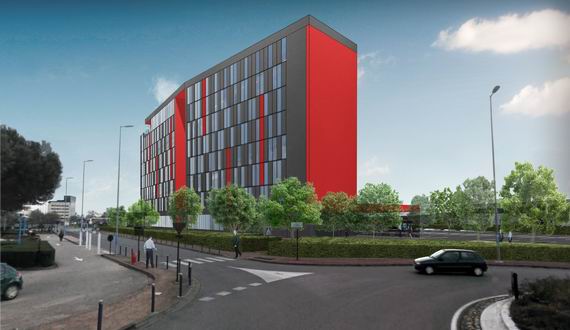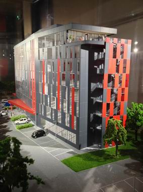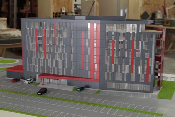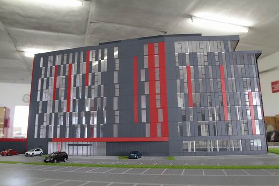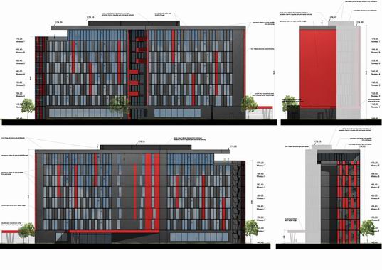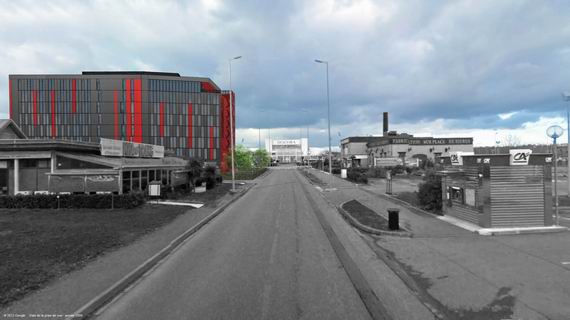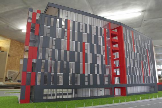 Ce projet est destiné à ac cueillir les personnels de la société BERGER LEVRAULT déjà présente sur le site de LABEGE – Il s’agira d’un immeuble « corporate » de 7000 m² qui offrira une meilleure « visibilité » de l’entreprise ainsi qu’un positionnement plus stratégique. Le concept architectural est celui d’un monolithe gris foncé, déformé dans ses grandes lignes mises en perspective et ponctué d’éléments « rouge Berger- Levrault » reprenant les codes couleurs de l’entreprise. Une typologie de façade caractérise le projet en alternant de façon aléatoire les parties vitrées les parties pleines . Par nécessité thermique d’isolation par l’extérieur, le projet est revêtu d’une « peau architecturée ». La coloration, le calepinage des pleins et des vides sur cette peau enrichissent la perception du bâtiment. Sur les pans de façade lisses, des « code-barres » verticaux créent un rythme vertical. Les façades des bureaux sont ainsi rythmées par l’alternance « aléatoire » des ouvertures verticales et des parties pleines réalisées en panneaux de résine colorée.