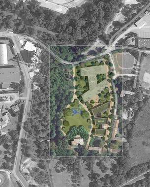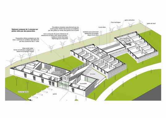 La conception du projet s’est faite dans un « esprit nature » consciente des avantages d’un environnement enviable et dans lequel la relation dedans/dehors joue un rôle majeur. Devant en quelque sorte donner le « la » d’une composition générale à venir, un des enjeux forts du projet MEGA est aussi de proposer une organisation qui dans tous les cas puisse non seulement se reproduire ou se continuer mais également être capable de générer une dynamique de site en harmonie avec le domaine bastidaire. La volumétrie générale et les principes d’implantation des bâtiments ont été étudiés pour répondre sans artifice complexe à cette idée de dynamique mais aussi aux objectifs d’accessibilité et environnementaux.