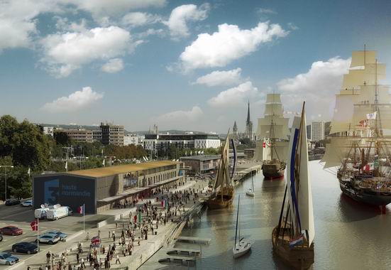 Le futur bâtiment de la station de France 3 Haute Normandie s’inscrit avec évidence dans les ambitions d’aménagement urbain de la collectivité pour ce secteur en devenir des quais de Seine ou « Espace des Marégraphes » Par sa position, en extrémité de quai, il constituera un équipement majeur pour la valorisation du front de Seine; son identité architecturale s’appuiera sur une modernité révélée par des lignes épurées, des percements et des épaisseurs de façade suggérées. Ce projet répond également à de nombreux objectifs environnementaux dans un cadre contraignant dont les enjeux préalables sont le strict respect des contraintes d’urbanisme, de site et de PPRI, l’économie du projet et des fonctionnalités spécifiques.