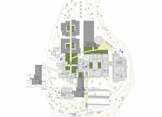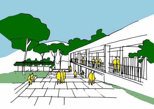 La première impression qui frappe lorsqu’on arrive sur le site de la Cadenelle, c’est la qualité de son architecture initiale et son intégration dans le relief et la végétation. Le contexte ne peut mieux être illustré que par le parti architectural et paysager initial : une architecture contemporaine se glissant dans un écrin arboré de pins et chênes, un esprit campus avec des qualités spatiales et paysagères qui ont franchi les années. Plus qu’y circuler, on y déambule entre les bâtiments : les croisements de flux constituent des points de rencontre naturels et ce ne sont pas les quelques intempéries de l’année qui doivent remettre en cause ces principes fondamentaux : le lieu est accueillant, ouvert et polymorphe ; tout semble cohérent, fort et prêt à se développer harmonieusement. Nous pensons que nos réflexions, nos propositions doivent permettre d’afficher une «continuité» des principes fondateurs