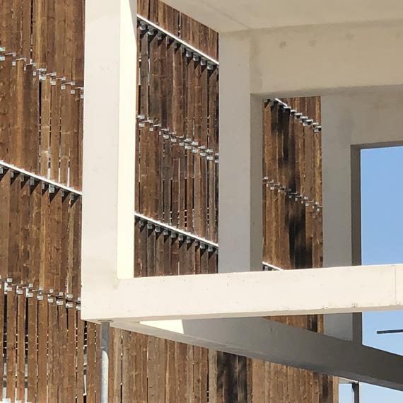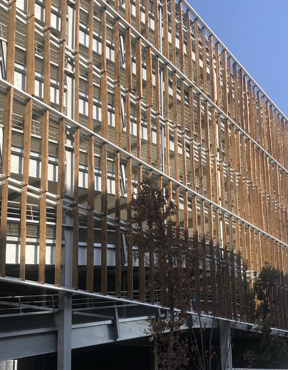 Le projet est voulu comme un hub de mobilité et de services, regroupant des places de stationnement, un centre de mobilité à l’échelle du quartier, un espace animé et ouvert sur le quartier ainsi qu’un local sportif. Le projet se développe dans une volumétrie extrêmement simple qui se différencie des volumes très fractionnés des ilots de logements qui l’entourent. Il propose sur ses quatre façades un rythme de lames de bois verticales qui se mettent en dialogue avec les modénatures de logements. Au nord, au contact de la rue jardin la structure principale défi nit un volume évidé qui sera support d’activité en relation avec l’espace public. Une nappe photovoltaïque recouvrira la quasi totalité de la surface du dernier niveau.