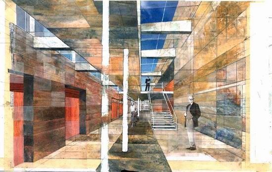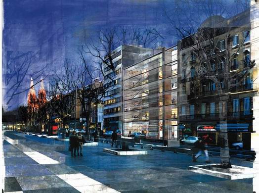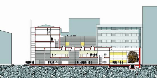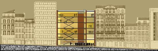 L'installation en plein coeur de Marseille des facultés de droit et d'économie doit constituer à terme un maillon essentiel dans la redynamisation de La Canebière. Connect é à la fois sur l'artère principale de la ville et sur la rue du lycée Thiers et du Théâtre du Gymnase, le site est appelé à devenir un quartier étudiant important. Ce projet marque la volonté de traduire avec évidence les éléments du programme. Une grande rue centrale en équerre traverse l'îlot et relie les deux accès à l'équipement. Elle introduit les notions de rectitude et d'équilibre sur lesquelles il est possible de fonder les bases d'un enseignement supé- rieur. La lumière naturelle est présente partout dans le projet par l'aménagement de larges terrasses et patios au coeur même de l'îlot. L'environnement est une donn ée essentielle de l'architecture. Ici c'est d' épaisseur et de complexité urbaine dont il s'agit.